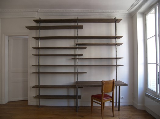 Office area for an apartment. Paris 11, France. Materials : Steel, solid wengé, glass.