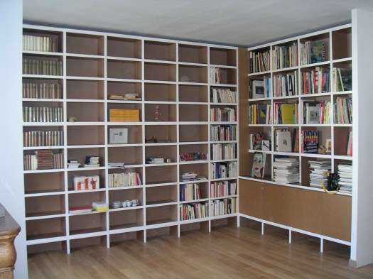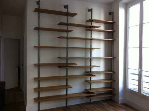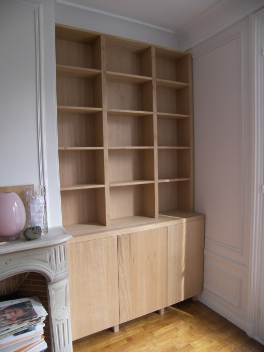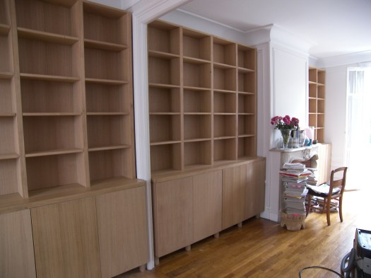 Shelving units. Paris 18, France. Materials : Veneered and solid oak.