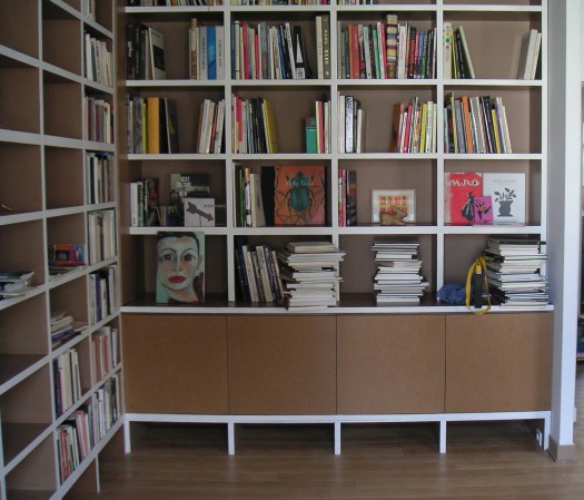 Shelving unit. Paris 11, France. Materials : Painted and varnished MDF, painted pine.