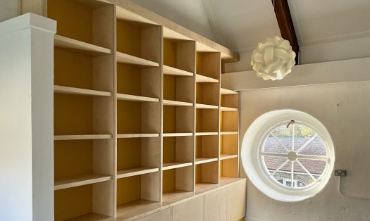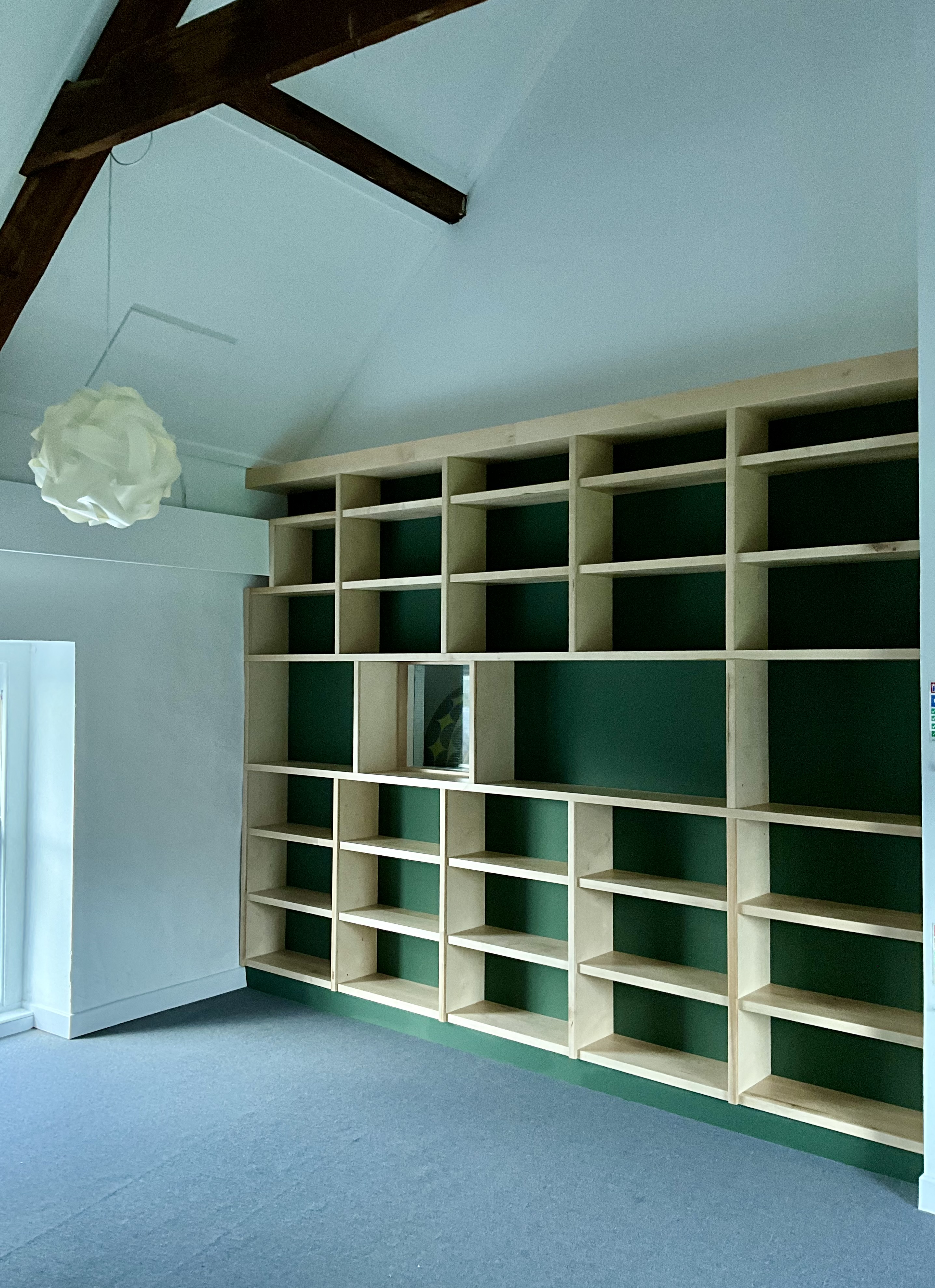 Book shelving for the Design Craft Council Ireland. Materials : Birch plywood, solid maple, painted MDF backings